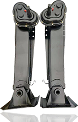 半掛車支撐裝置,俗稱-支腿。利用了“立木頂千斤”的原理,位于半掛車車架前端,供半掛車與牽引車脫離后使用。單動(dòng)支腿又叫“一...